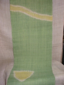 地色は、ザクロのアルミ媒染の黄色とスオウを重ね染めされました。
