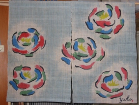 画像ではろうけつ染めが見えにくいですが、ロウで描かれました。