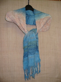 スオウをアルミ媒染した、ピンクの糸と、白糸で織り上げて、