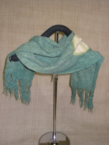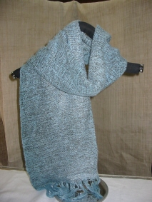 藍のむら染めの糸と白糸を横糸に織られました。