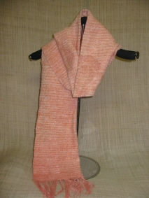 スオウのアルミ媒染でむら染めした、糸を横糸にして、織り上げた後、