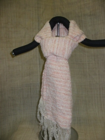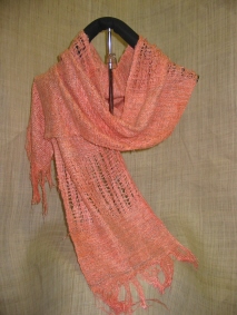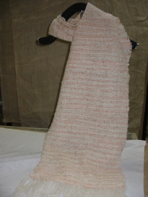 スオウのアルミ媒染でむら染めした糸と白糸の2本取りで、織り上げられました。