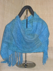 織りあがりの後に染めた藍のブルーと重なったグリーンがいい味出しています。