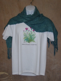 横藍で中色のブルーに染めた後、ザクロをアルミ媒染しました。