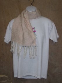 アカネのアルミ媒染のピンク。きれいな絹糸3本で織り上げました。