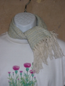 藍で染めた水色の糸と、ザクロのアルミ媒染でむら染めした、