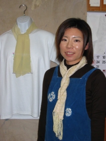 ザクロのアルミ媒染でむら染めし、昼から、手織りされました。