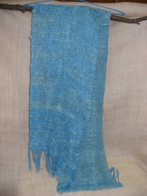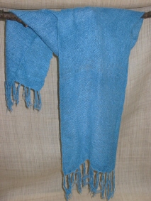 シルクの白糸で、織り上げてから、藍に浸けられました。