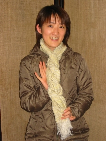 浅田さんと一緒に、シルクの白糸で織り上げ、